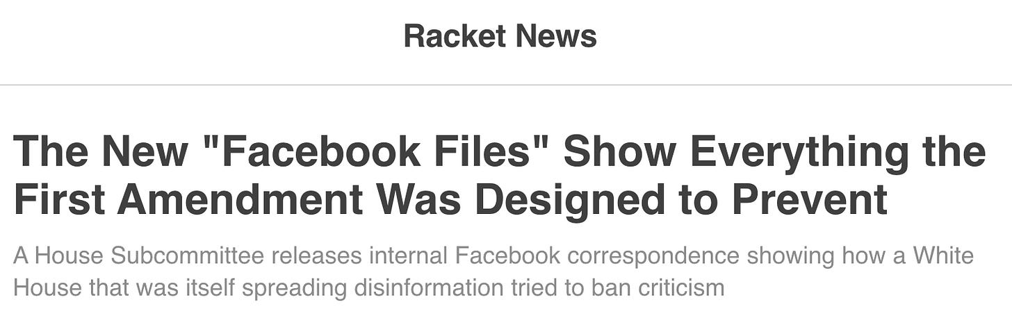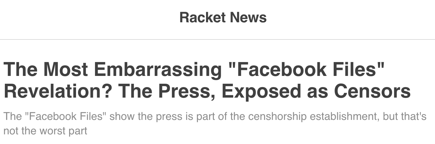 For more on the “Facebook Files”, I recommend following the many threads on Representative Jim Jordan’s (R, Ohio) twitter feed @Jim_Jordan as well as Matt Taibbi’s Racket News Substack (click on images for links) :