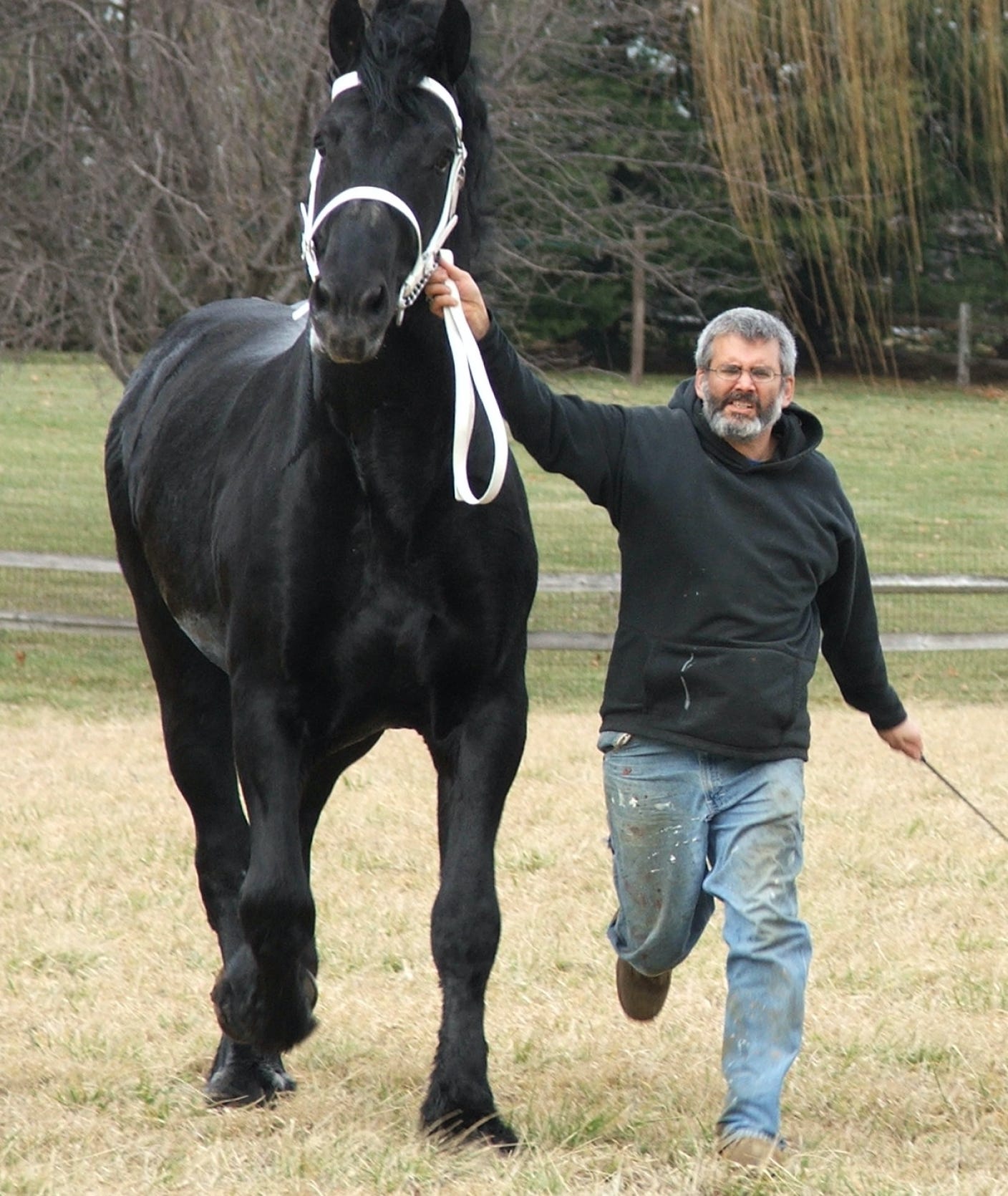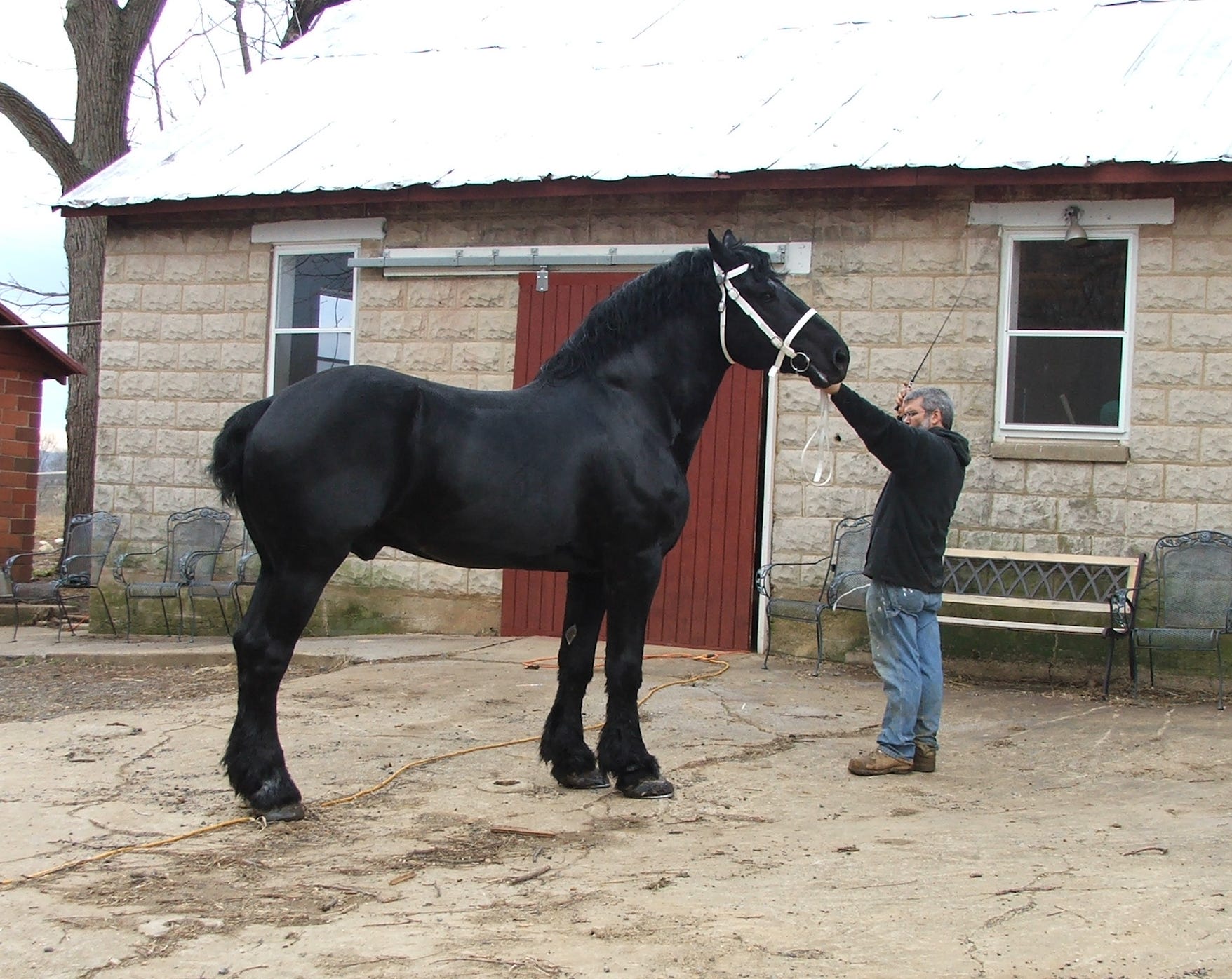 At one time, we used to breed, show, drive, and train Percherons (giant draft horses). Now that we have light horses, I forget just how big a Percheron stallion is. Pictured is MG’s Prince Charles. Our pride and joy for many a year.