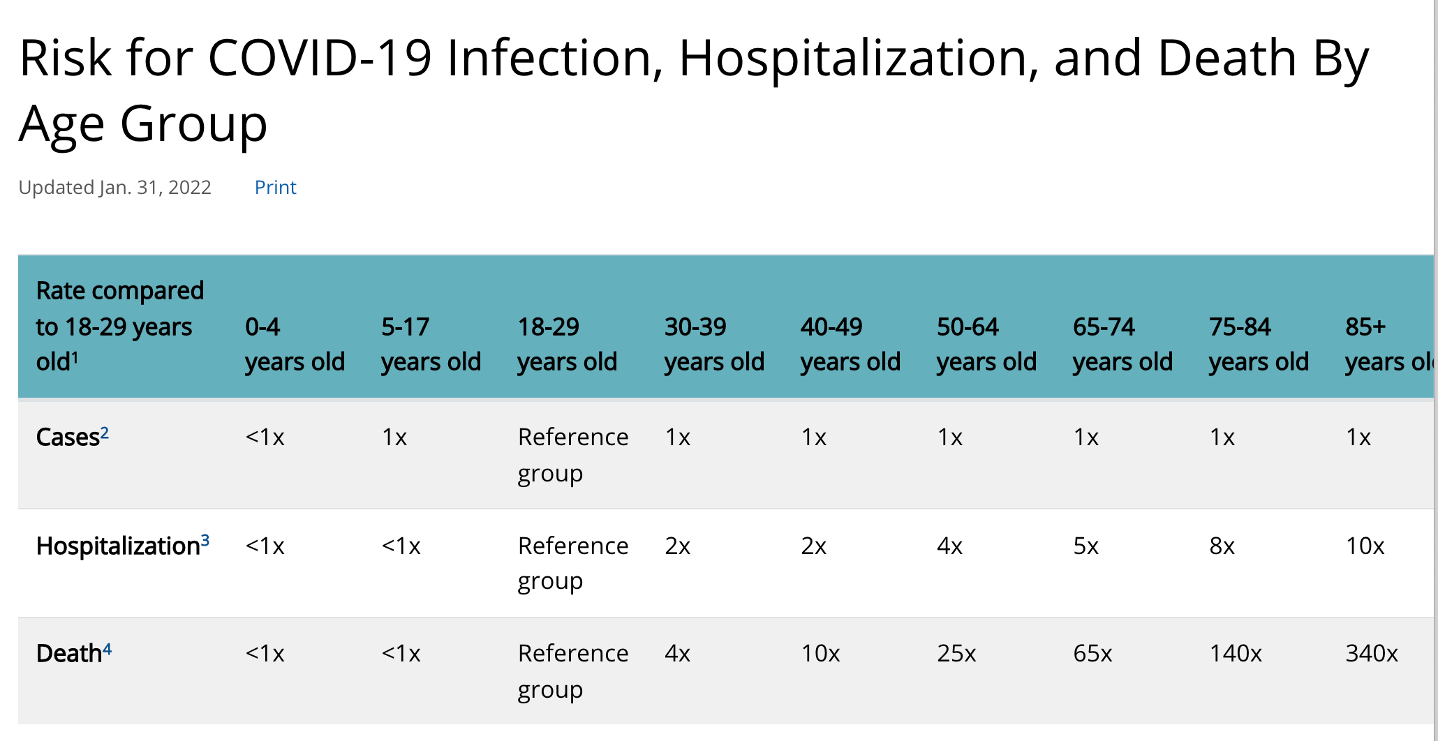 Data from the CDC shows that elderly people are 340 times more likely to die and 10 times more likely to be hospitalized than 18-29 year old adults.