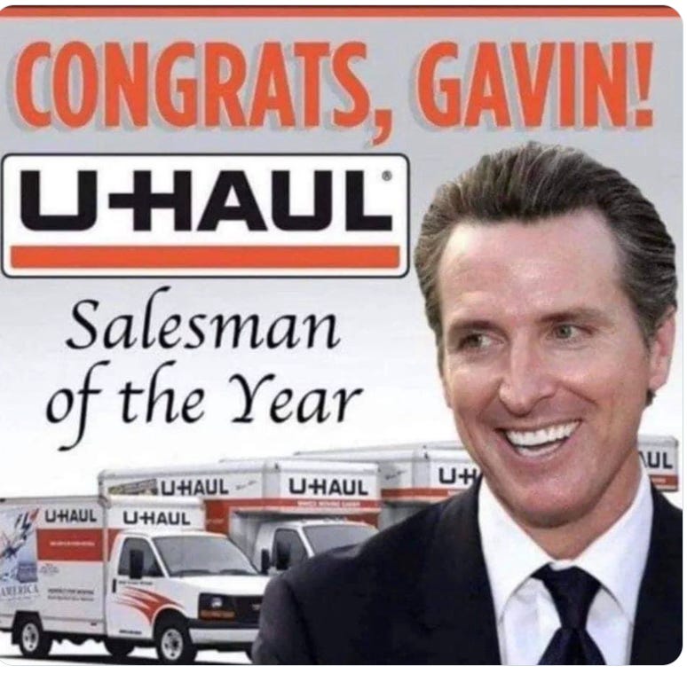 The U-Haul meme is spot on. Even before covid (BC19...?) U-Haul had more one way bookings out of CA, WA, OR and CO than they could handle and could not get sufficient trucks back to CA in particular. People aren't that stupid and eventually figure things out, voting (or betting) with their wallets.