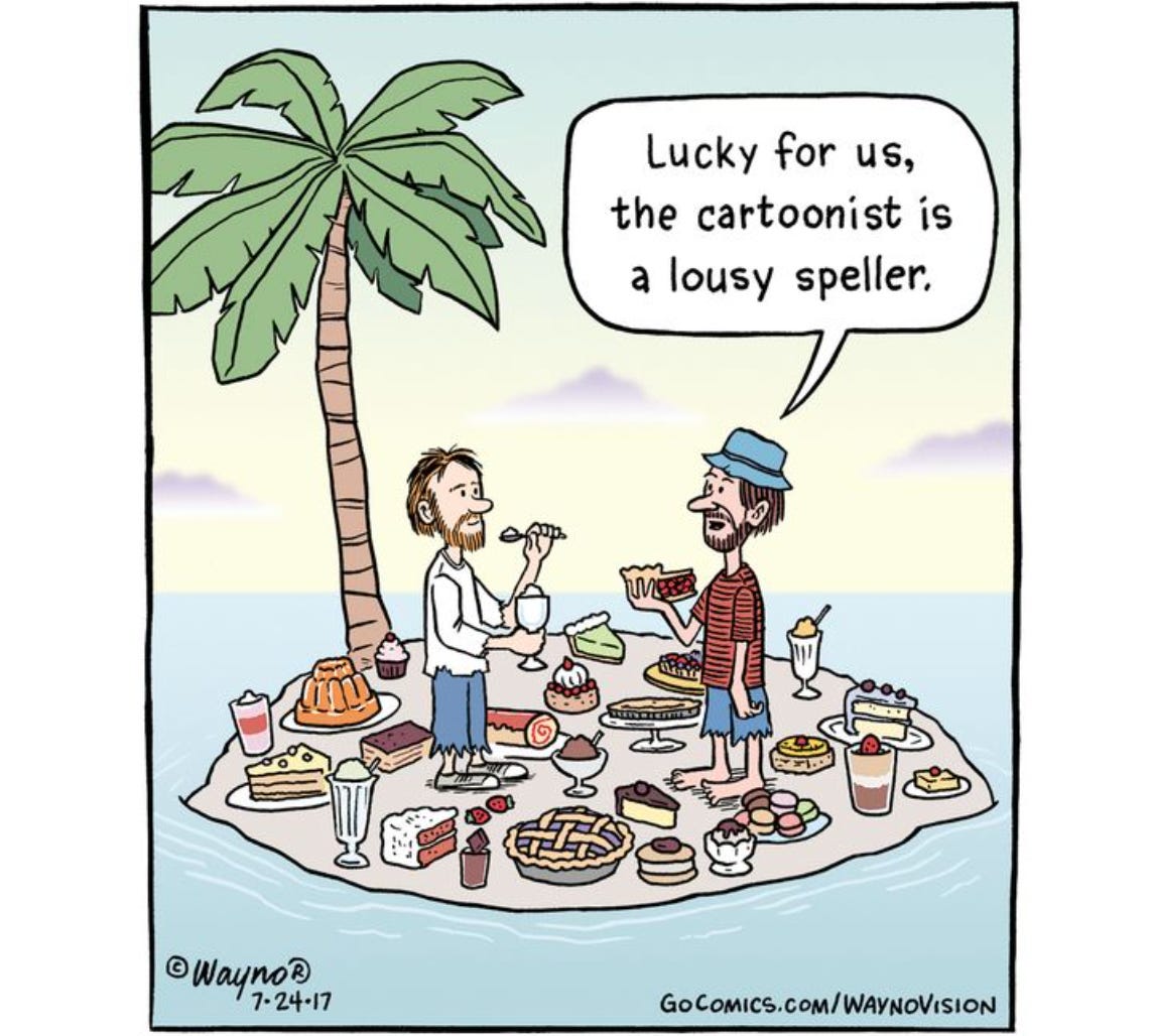 Took me a minute to get the dessert/deserted one, but when I finally did I laughed, thank you. Here is one for you Dr. Malone: