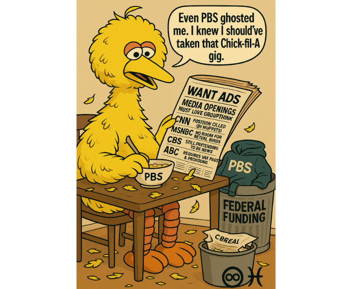 The truth is that when Big Bird became a child predator, it became time to defund PBS.