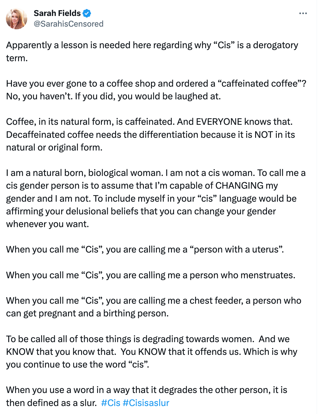 Elon Musk has defined “CIS’ as a slur. He has a point.