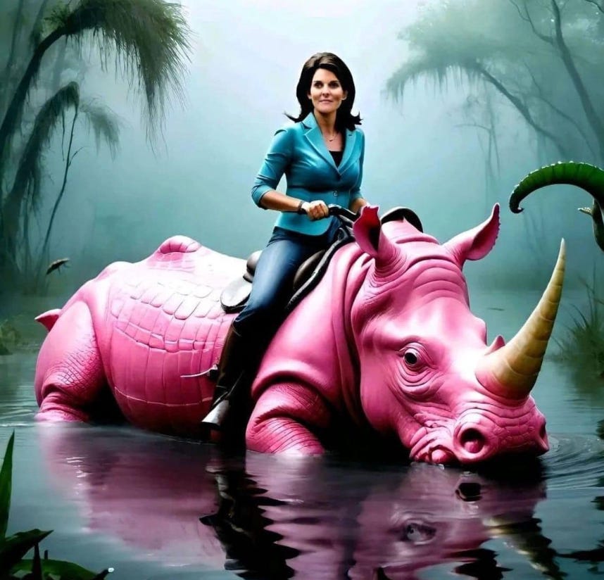 I am still snickering that she lost to “none of the above” in a landslide. The “nah” vote was 63 percent to Haley’s 31 percent.