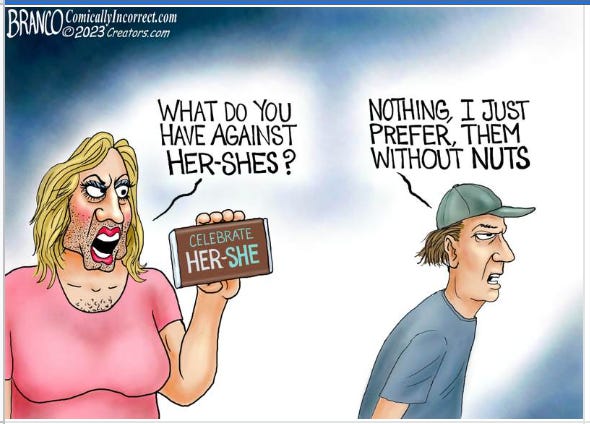 So many good ones here, I absolutely could NOT pick a favorite. I don’t know how you two do this week after week (twice a week!), but so grateful that you do. Sardonic, ironic humor full of truth and a few roaring lions. 🦁 🦁 🦁