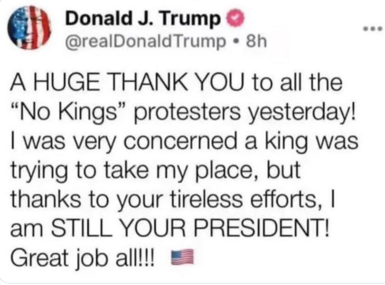 I read a post yesterday by the organizers of the No Kings at Stonefield Shopping Center, Charlottesville wrote they had 10,000 people protesting that we have no kings. Then below the post people who were there said maybe somewhere between 600-1200. I posted does anyone there realize who finances these newspaper ads, printed signage. They don’t know a huge amount of $ is donated by an American Communist, Neville Roy Singham who lives in China now out of reach of our DOJ. He’s spread his millions across 500 Anti American organizations and assists the CCP with their anti US government operations. This guy is married to Jodie Evans founder of Code Pink. Look up these 2 and you’ll see they support the CCP by spending millions to influence these boomers to attend and advocate for Trump hate and their No Kings protests. I always let these locals know how successful they’ve been as there are still no kings in America. I plan to have a no kings celebration on July 4th our 250th anniversary of No Kings!