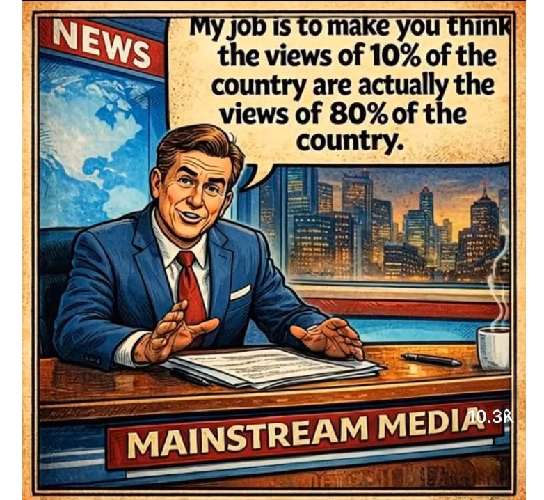 Another great bunch. Have to say partial to the one about MSM convincing us that 10% opinion really 80%. Been suspecting same a long time now