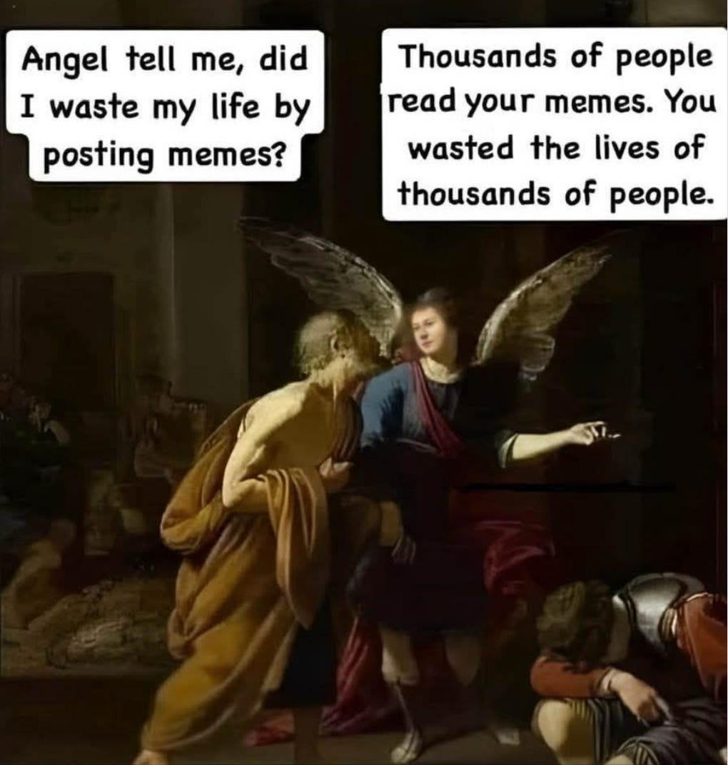 Thankfully, I have not wasted my life posting memes! I only read them on Fridays and Sundays.