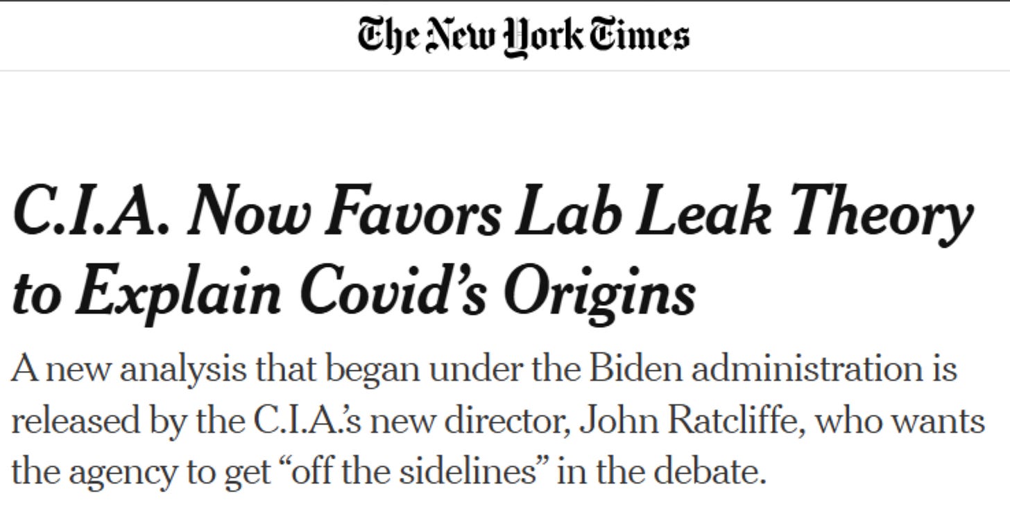 The video below is important and it relates to Kennedy’s nomination. RFJ. Jr. came out early with his book, “The Wuhan Cover-up and the Terrifying Bioweapons Arms Race”, which laid out how SARS-CoV-2 was developed in a lab. Yep - another one of his “conspiracy theories” - that just happened to be true.