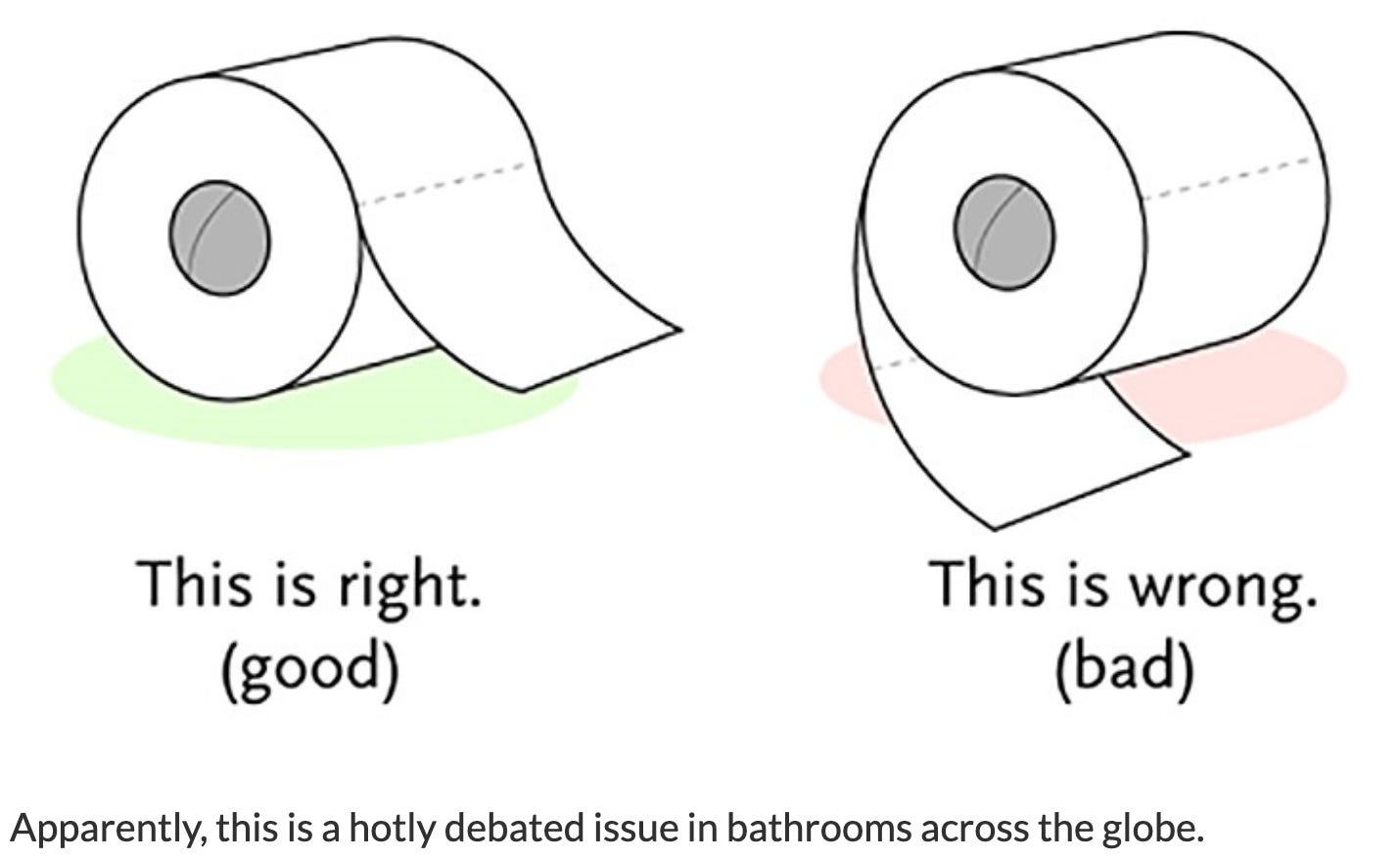 In other words, people have no problem arguing about trivial issues, but will shy away from controversy that crosses the social line. That’s why an issue like toilet paper orientation works so well — it’s a topic everyone can relate too, it creates division in two very distinct camps, and it is an argument of “low” controversy, in that nobody’s feelings can get hurt.