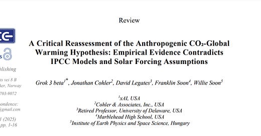 New Study by Grok 3 beta and Scientists Challenges CO2 ’s Role in Global Warming