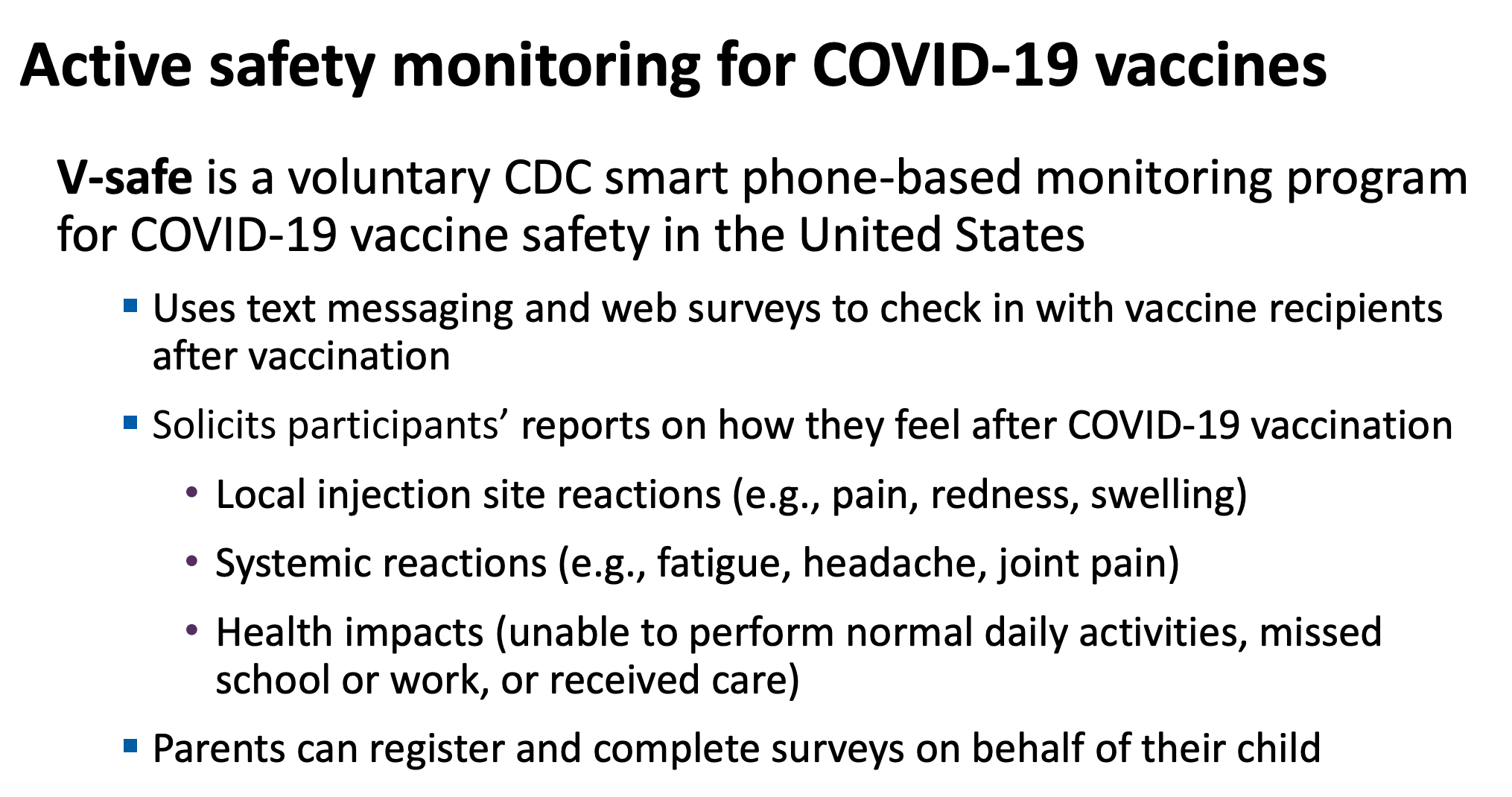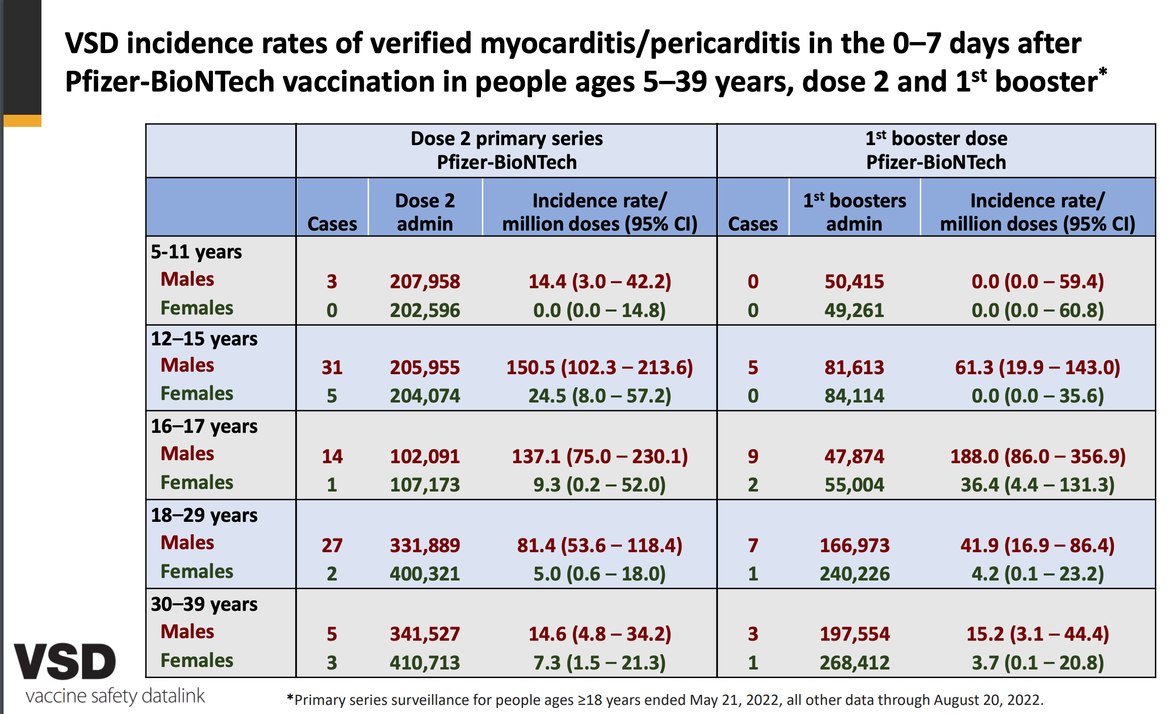 The VAERS and V-safe data from the CDC slide deck show a significant risk of myocarditis and pericarditis for young men, as has been reported elsewhere. Please go to the CDC slide deck to view all of those slides.