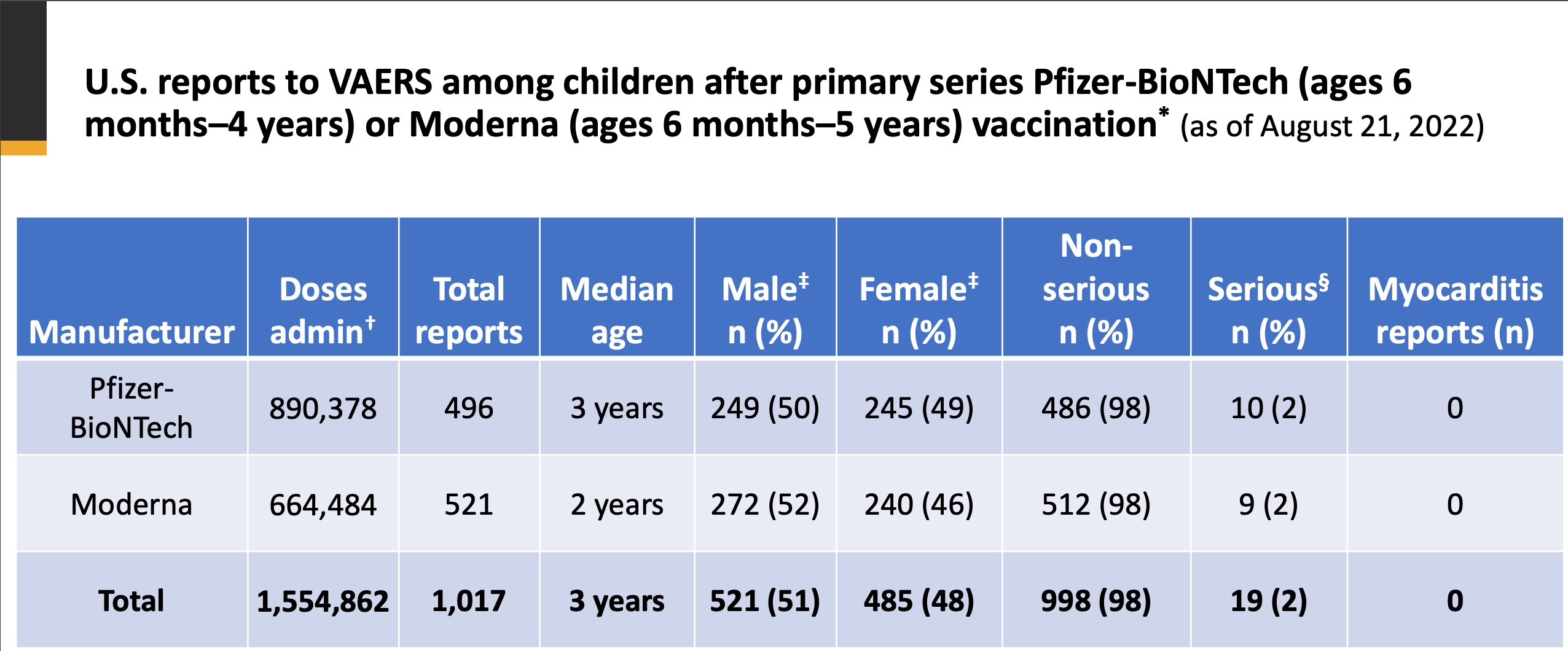 Now, I bet that there aren’t that many adverse events from Omicron in the same time period in healthy normal children ages 6 months to five years.