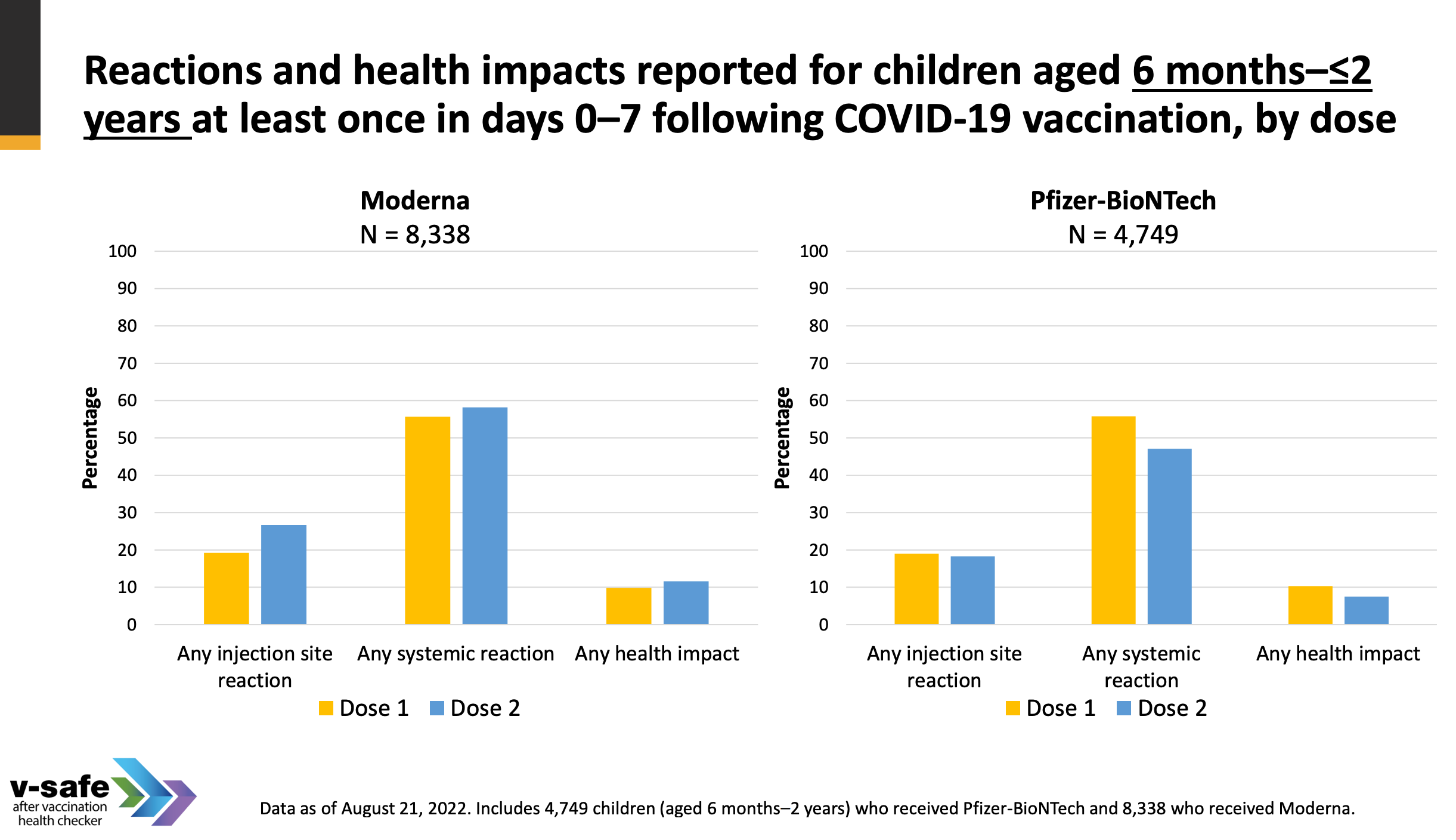 Between 50-60% of all babies and young children (see graphs below) reported a systemic reaction and about 10% had a “health impact.” Frankly, I find this shocking.