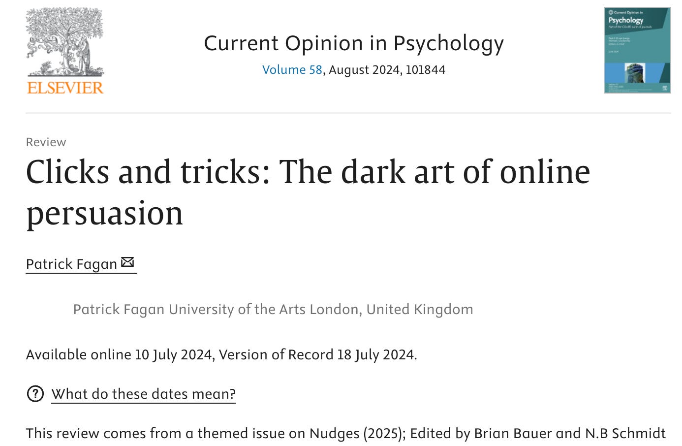 The number of peer-reviewed papers documenting and encouraging the use of dark nudges is astounding. Often, these organizations don’t even know the name of this technique - they just do it because it is effective.