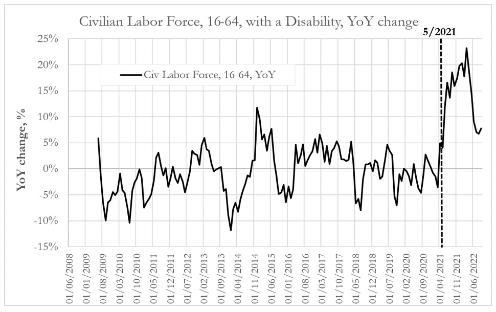 Figure 2 - Year-on-year change in disabilities in the US civilian labor force