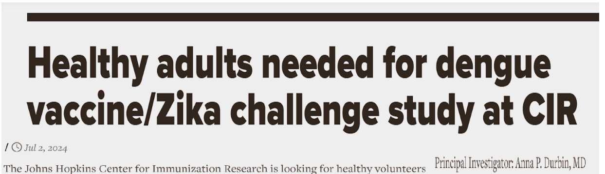 Helen Branswell interviewed both Grady and Durbin in 2020 in the context of whether HCTs might be appropriate for Covid-19 (referencing Zika). Interestingly, Branswell notes a Zika HCT’s providing “too much risk to the participants”– but never mentions Durbin’s proximate interest in doing precisely that. Grady warned against a covid HCT but wasn’t questioned on the intercurrent, rekindled Zika-injection efforts.