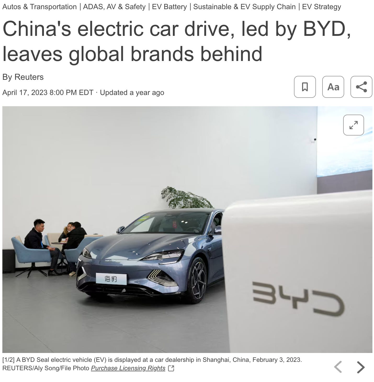 Electrification: China is a leader in electric vehicle (EV) production, with many manufacturers investing heavily in EV and plug-in hybrid technology. BYD, in particular, has a significant presence in the EV market, with a global sales share of over 50% in 2023.