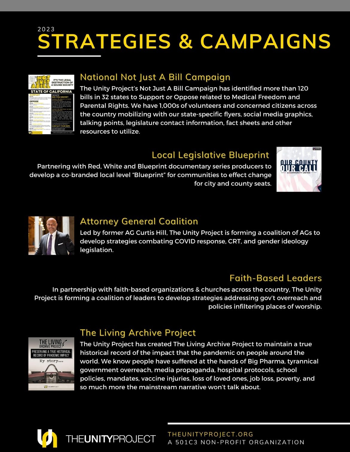 For every donation of $25 or more, you will receive The Unity Project’s extensive digital download resource guide. This guide will provide tangible tools and curated resources to help you champion parental rights, preserve medical freedom, and uphold your local sovereignty.