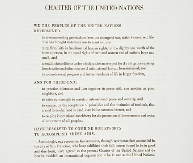 Below is a image of The Original Charter of the United Nations, signed 1945