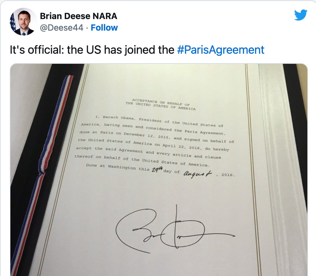 This is the TREATY that President Trump withdrew from and President Biden re-joined.