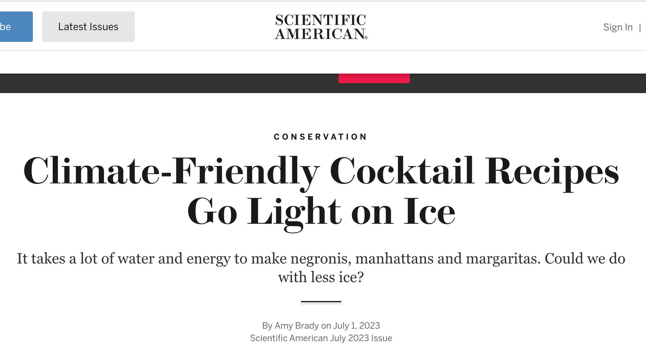 Furthermore, note the subtext lede. Forgoing ice for negronis, manhattans, and margaritas??!!?? Well, that will surely have a measurable impact on polar ice cap thawing and sea level rise. Polar Bears all over the northern regions are celebrating with high fives as you read this.