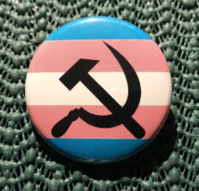 Trans Communist Pride LGBT flag pin back button or magnet 1.5"