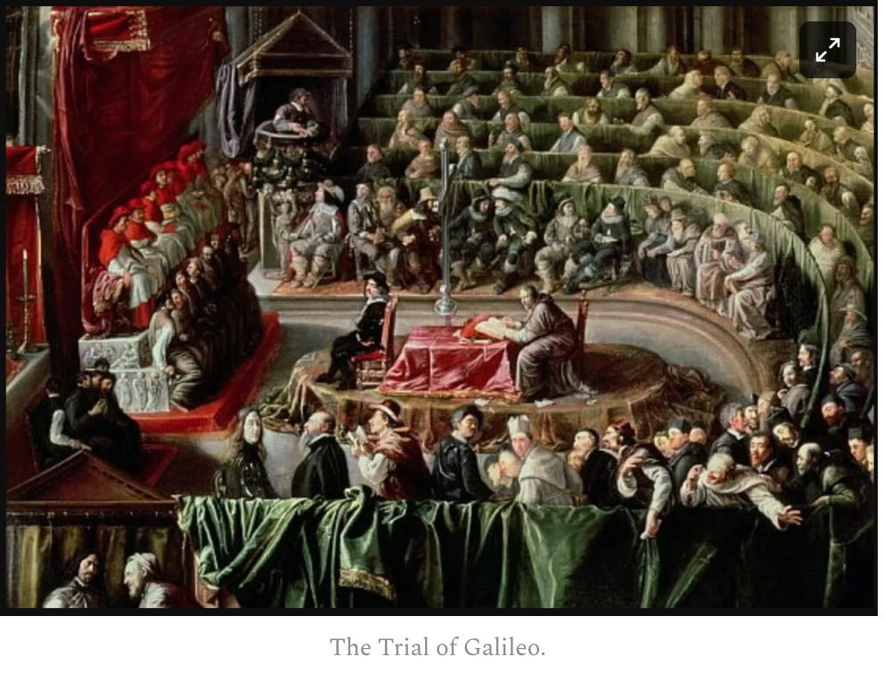 I have a print of the “Trial of Galileo” painting in my office. He is seated in front of the assembled might of the Catholic Church. He was accused of heresy for saying the earth went round the sun. Galileo was convicted of heresy in 1633 and was sentenced to spend the rest of his life under house arrest. I refer to the painting when I explain that my views on Covid are heretical.