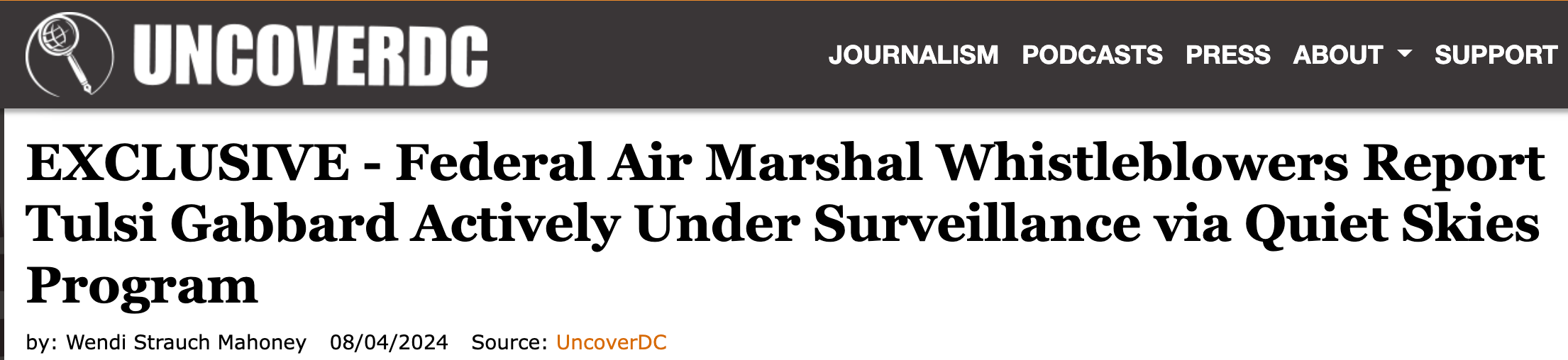 Getting back to Reporter Matt Taibbi, Racket News, and the Tulsi Gabbard story, it was actually Wendi Strauch Mahoney of the edgy but obscure alternative media source “Uncover DC” that broke the story four days ago.
