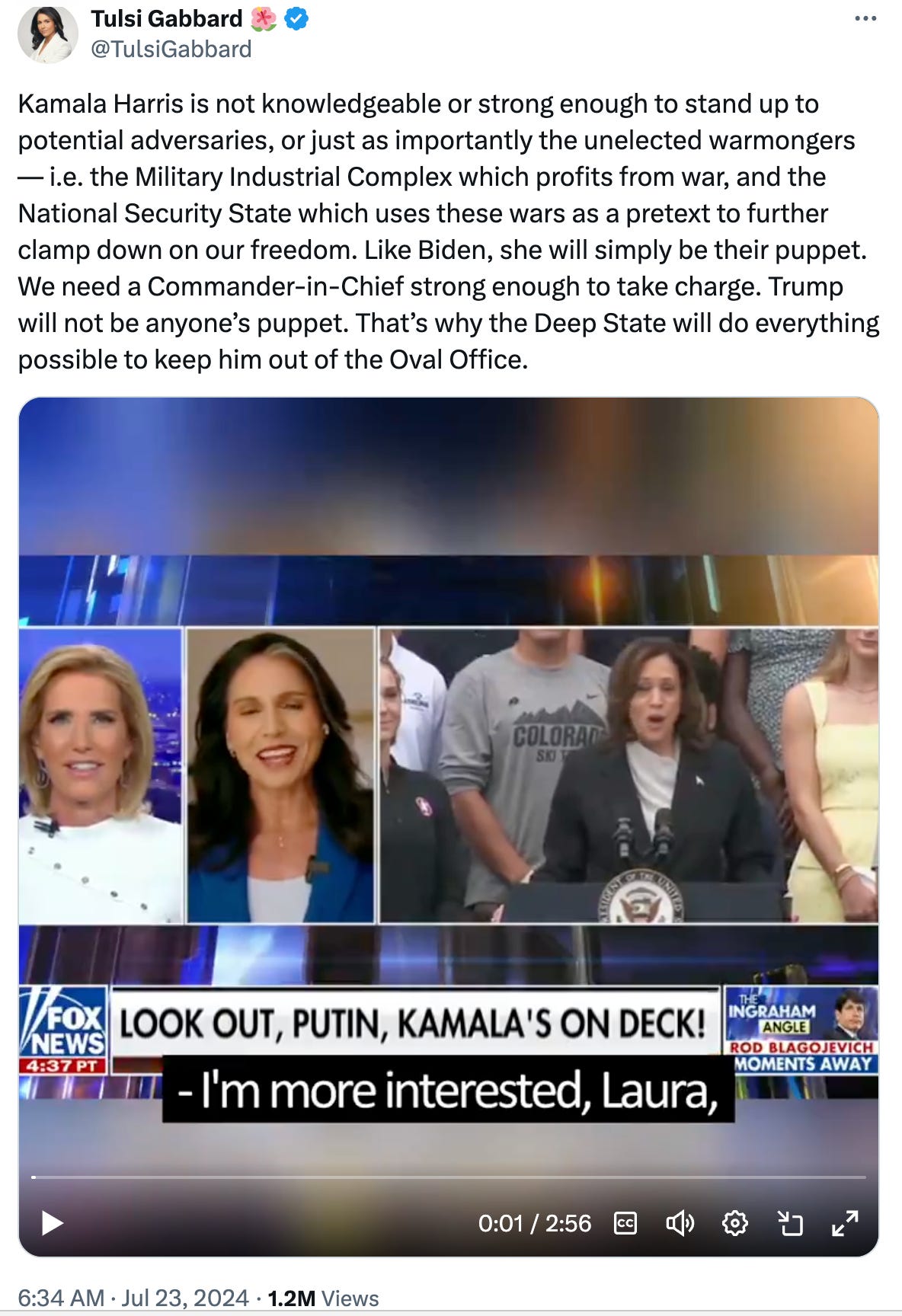 Link to the Tulsi Gabbard post on “X” here