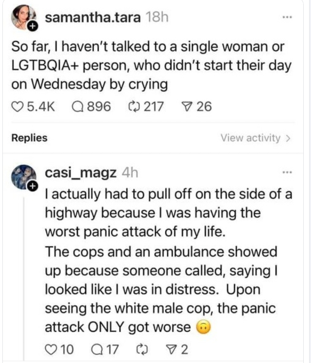 At Harvard, evidently students children are still needing time off, and some need psychological counseling, due to the outcome on November 6th.