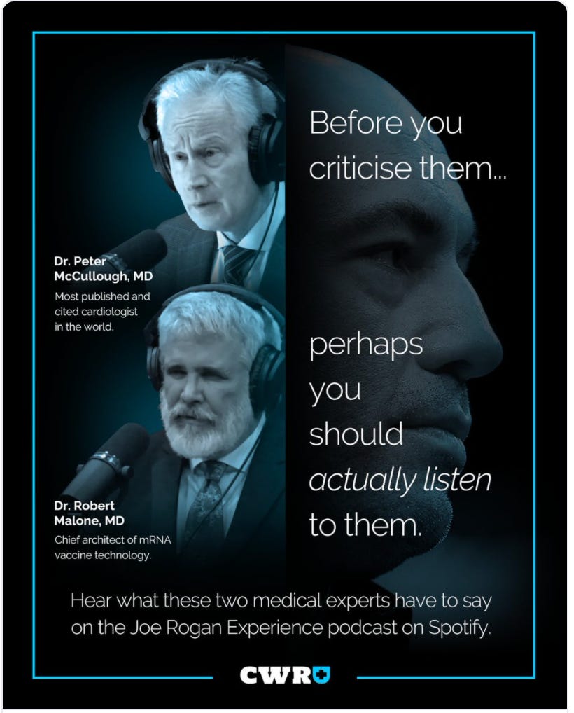 Dr. Malone, I am praying for you daily and frequently throughout the day. I absolutely respect, love, admire and care for you and your wife and thank God for your sacrifices to your health, finances, time and family on behalf of what is Truth and Morally Right. God will demand a reckoning and mete out Justice, just perhaps not on our timetable, but I do know the wicked will NOT prevail eternally. I also pray for Drs. McCullough & Kory and your network, the truckers, the Canadian Parliament vote tonight, for those who gave and had their accounts frozen, for our country, for courage and for wisdom as to what to do with our bank/401k/savings. I do know that God is using you and your colleagues to wake people up, each one will stand before Jehovah as Judge, I'm sure many are lifting you and yours up before the Throne of Grace. Thank you from the bottom of my heart.