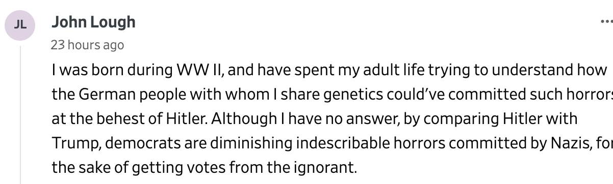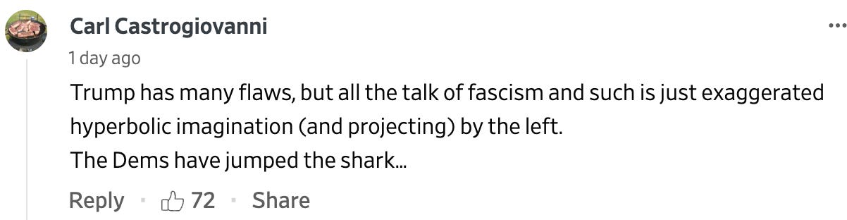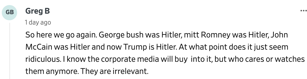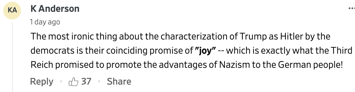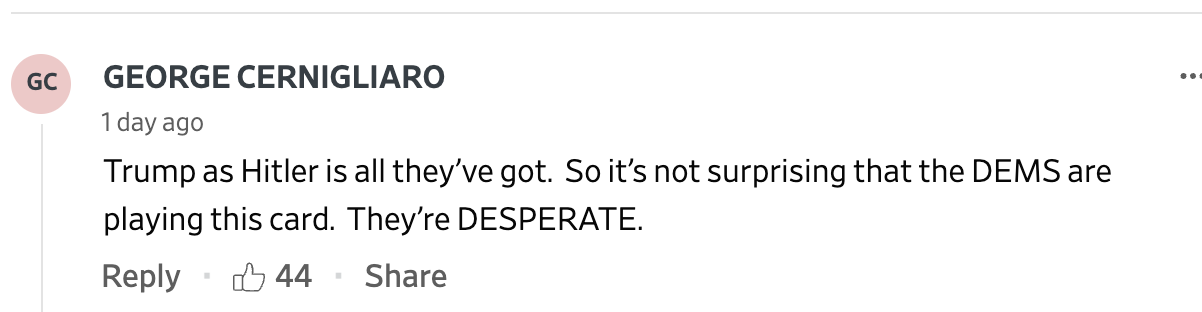 He cites his “evidence” of Trump being a fascist and a Nazi. Here it is: