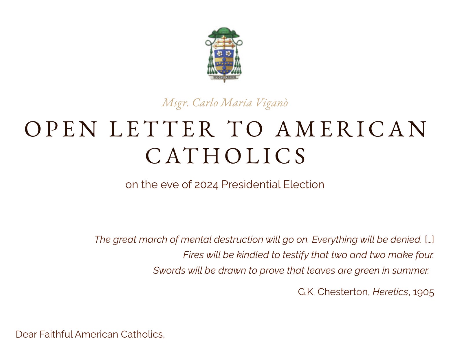 On a more serious note, Archbishop Carlo Maria Viganò has written an open letter to Catholics in support of Donald Trump.