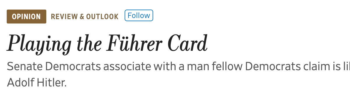 Democrats seem to have decided that their only play left is to claim it’s springtime for Hitler. Appeal to undecided independents, or Nikki Haley Republicans, by demonizing Mr. Trump as too risky to be President again. Perhaps they think this worked in 2020, and that it will work again. But it failed in 2016, and at least then Senate Democrats weren’t claiming to be Mr. Trump’s policy allies.