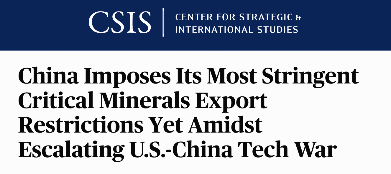 The new restrictions marked several firsts in the trade war—the first time Chinese critical minerals export restrictions were targeted at the United States rather than all countries, and the first time restrictions on critical minerals were a direct response to restrictions on advanced technologies. Critical mineral security is now intrinsically linked to the escalating tech trade war.