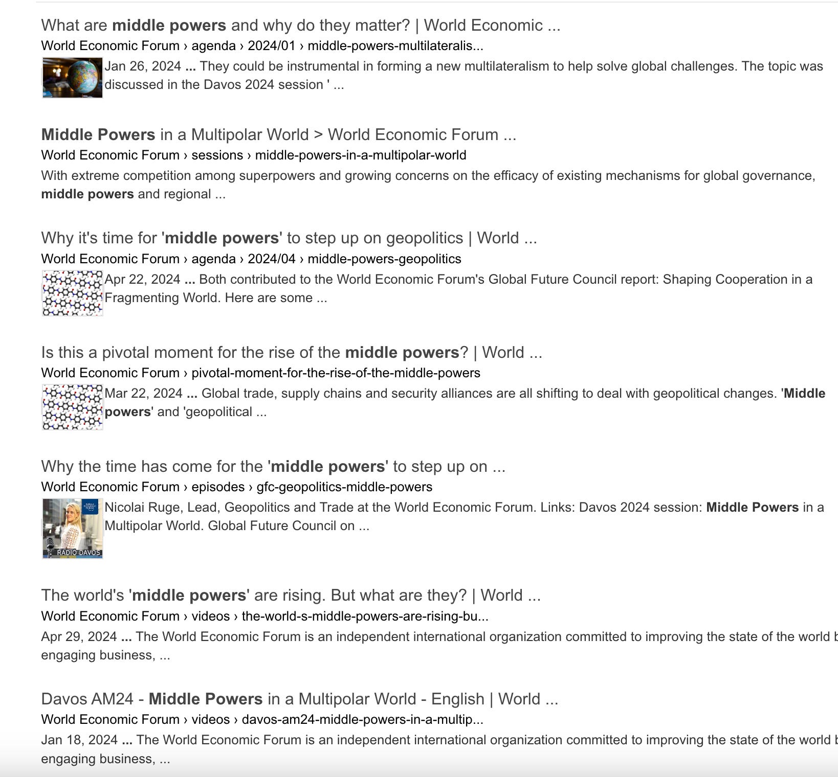 Some of the recent WEF articles on “middle powers” include: