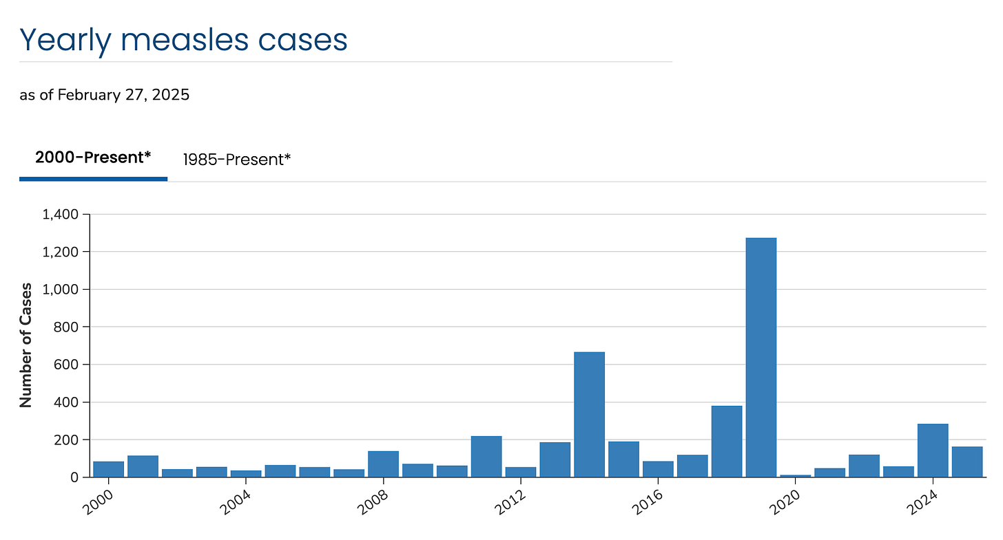 The bottom line is that as international travel increases and the vaccine failure rate of the MMR vaccine increases over time, there will be more measles cases and outbreaks in the USA. This problem won’t be solved with more mandates for the vaccination of school-aged children.