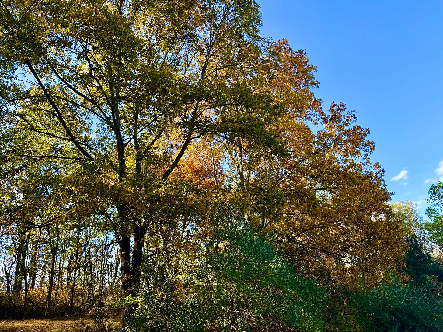 In the fall, there is nothing more glorious than seeing the last gasp of the dying leaves in all their glory; the metallic array of swaths of color, the last hurrah of the year’s exuberant growth.