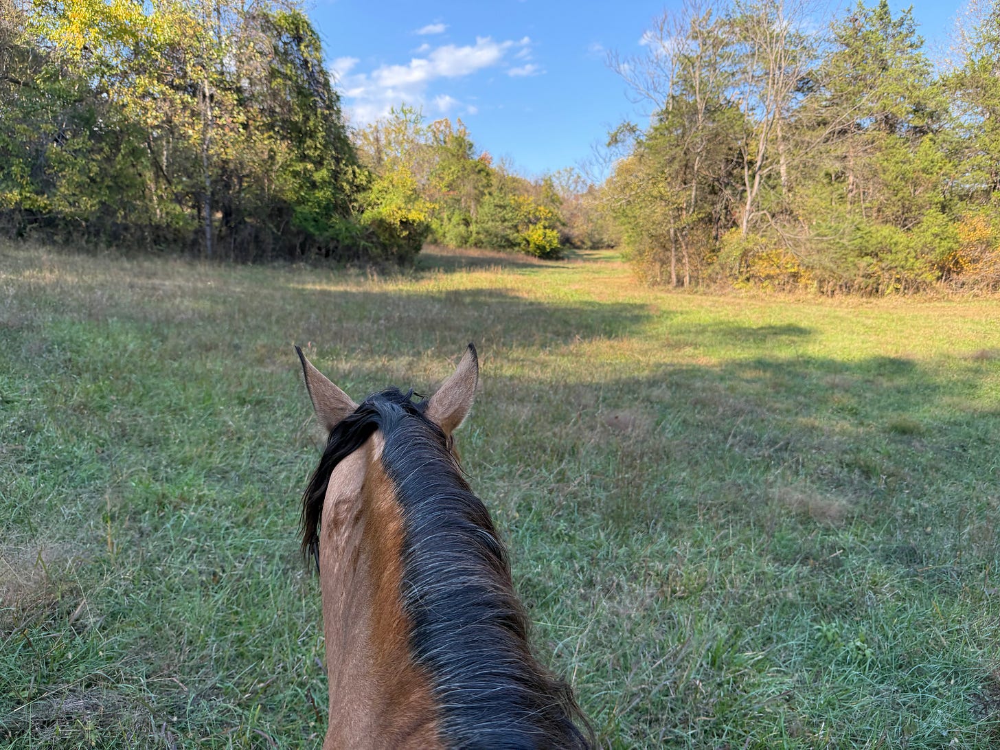 Sometimes, I wander in the back woods of our farm - no horse needed, and that dreamlike state can overcome me then, too. That sense of purpose that we are all in this together, and that the world, this universe, is more than we know, and that there is more to us than this life. It just hasn’t been revealed yet.