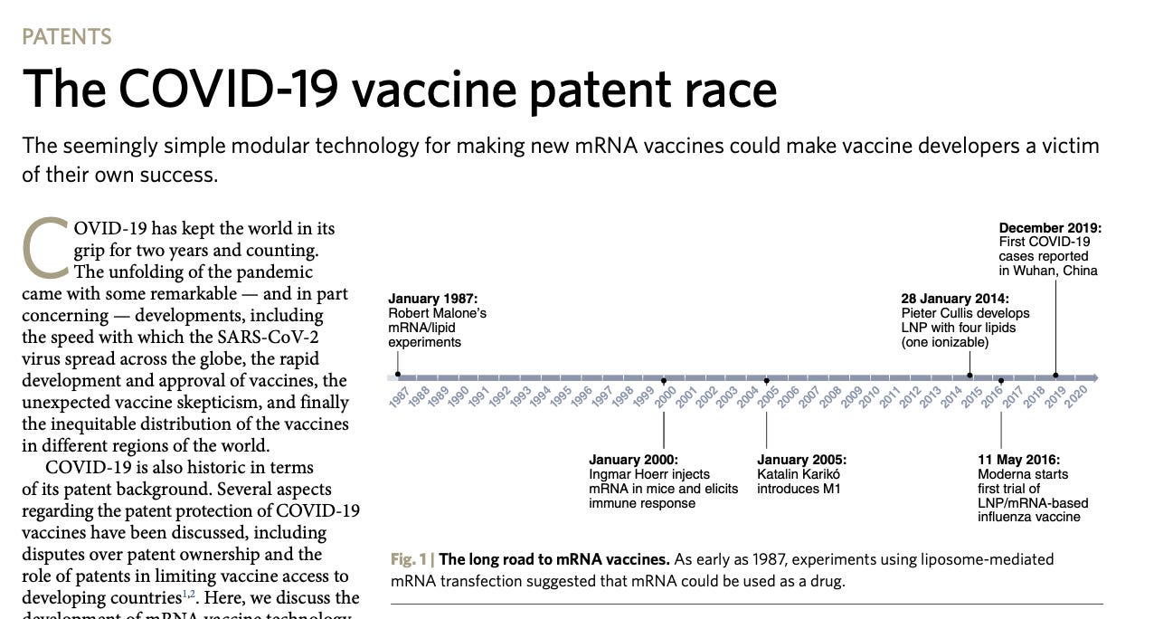 This is not the first time that the Nature journals failed to properly cite and acknowledge the early work of Dr. Malone and his other co-inventors listed on the patents as the actual inventors of the mRNA vaccine platform and technologies. In September, 2021, Nature published an article, written by Eli Dolgin that asserts that the first proof of principle experiments occurred much later in 2005. That paper was never corrected, even though Dr. Malone notified the author, Eli Dolgin about the error. Mr. Dolgin refused to even read the patents and to consider that fact that the timeline listed in that paper was incorrect. This has set up a cascade of major newspapers, journals and magazines insisting that Dr. Malone has nothing to do with the actual proof of principle mRNA vaccine experiments.