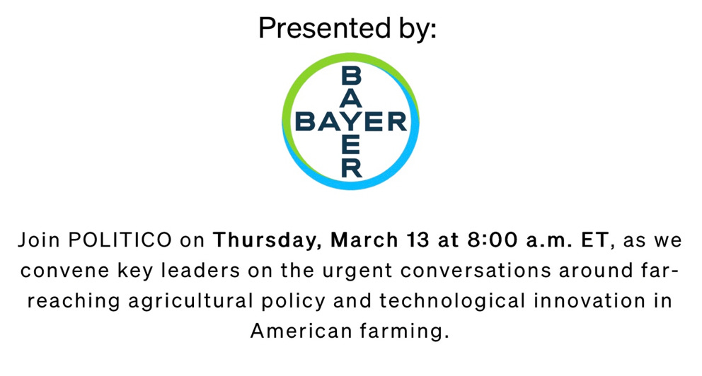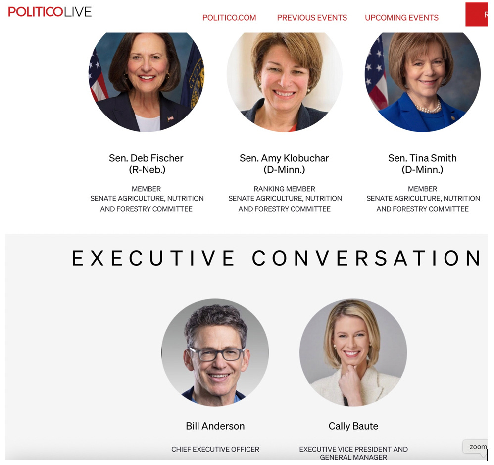 However, this may not accurately reflect how the vote will go in the full Appropriations committee and in the full House and Senate. Why? Because Bayer CEO Bill Anderson has bragged about his bipartisan support. Bayer sponsored a Politico event in March with the ranking member of the Senate Agriculture Committee, Amy Klobuchar (D-MN) and two other members of the Committee, Senators Tina Smith (D, MN) and Deb Fischer (R, NE).